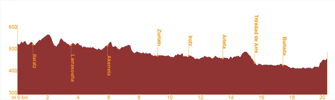 Durante todo el recorrido nos acompañara el río Arga mientras serpenteamos bosques de hayas y pinos, pueblos nobles y encarar finalmente el puente de la Magdalena antes de entrar en Pamplona y cruzar el Portal de Francia para entrar en la zona más antigua de la ciudad: la Navarreria.