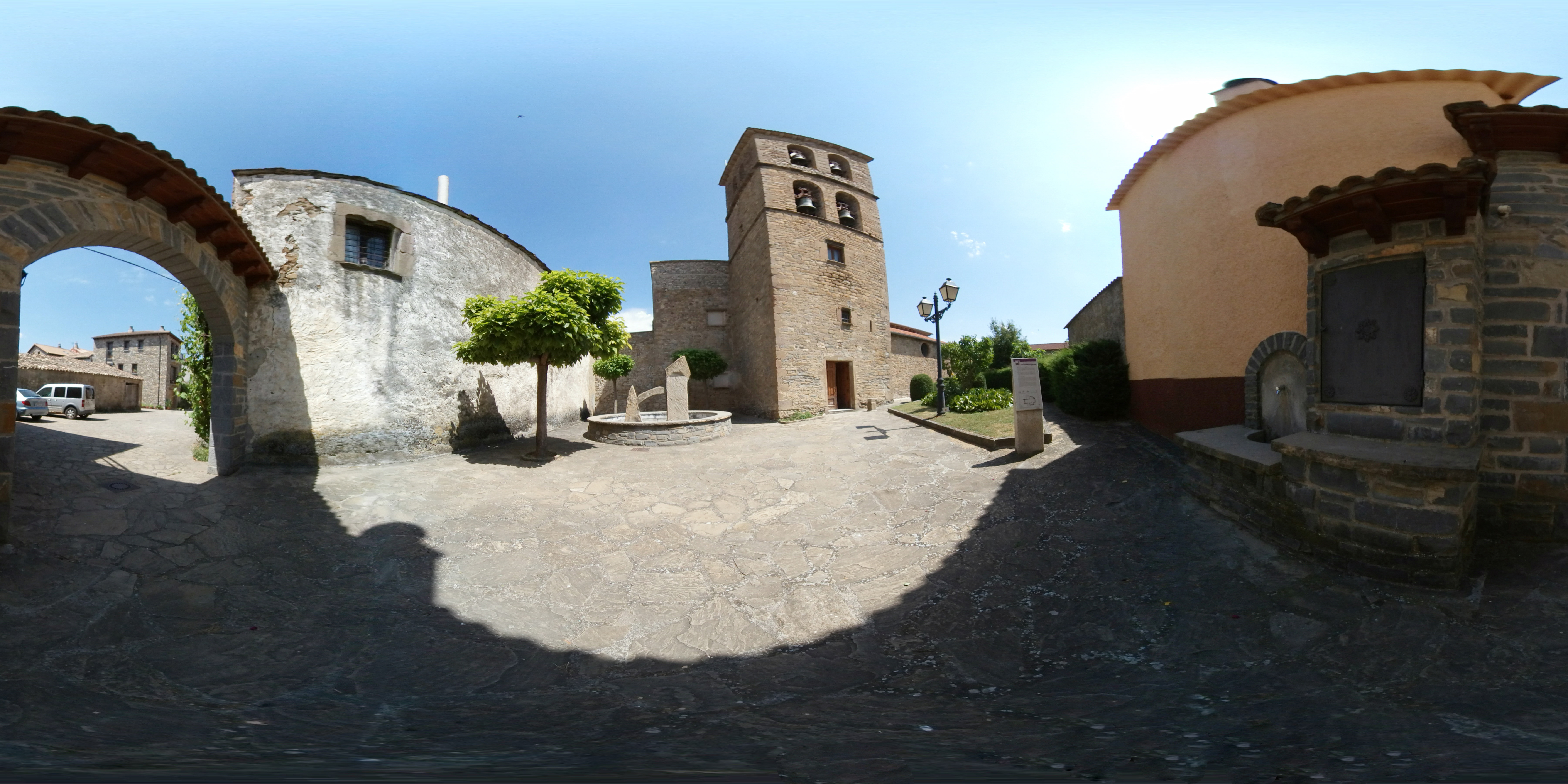 En el otro extremo, junto al río y al puente, se situaba el poblado eclesiástico. Algunos indicios señalan que el precedente más antiguo de este segundo núcleo pudo ser un antiguo monasteriolo bajo la advocación de Santa Cecilia. Por el vecino puente cruzaba el itinerario procedente de los altos valles, por Siresa y Santa Cilia. En los siglos XII y XIII, el sometimiento de los de Santa Cilia al vasallaje a San Juan de la Peña implicaría la renovación de este barrio: la iglesia de Santa Cecilia (San Salvador) fue fundada o reconstruida en estilo románico; edificaron un palacio para acoger al prior que gestionaba el señorío y almacenar las rentas señoriales; y mejorarían el molino y el puente, arrastrados por las avenidas y reconstruidos en más de una ocasión. Para intentar contener esta furia periódica, comenzarían a construirse los sucesivos diques de contención que aún hoy cumplen esa función.